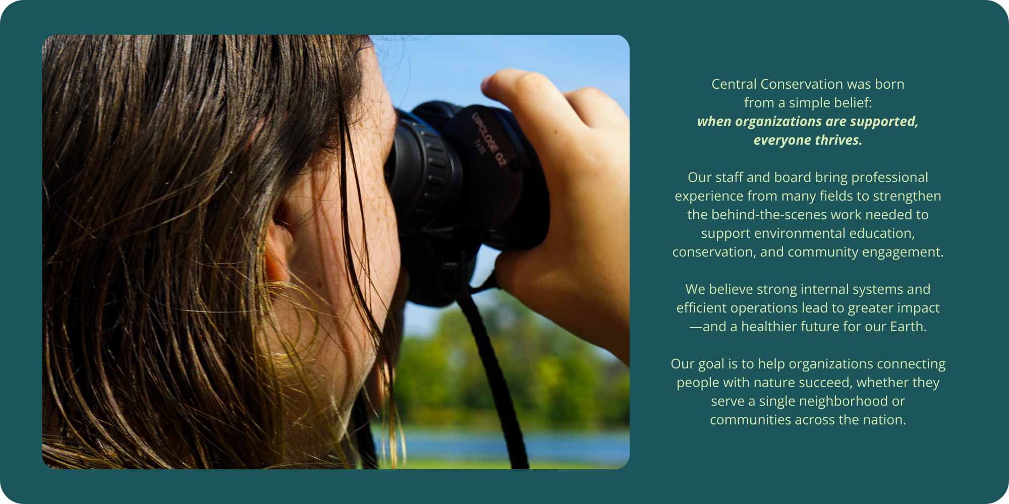 Central Conservation provides guidance, shared support, and administrative resources for environmental organizations working towards connected communities.